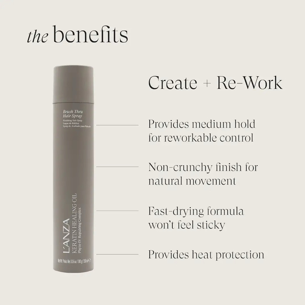 Keratin Healing Oil Brush Thru Hair Spray er en hårspray med medium hold som tilfører volum, glans og kontroll.