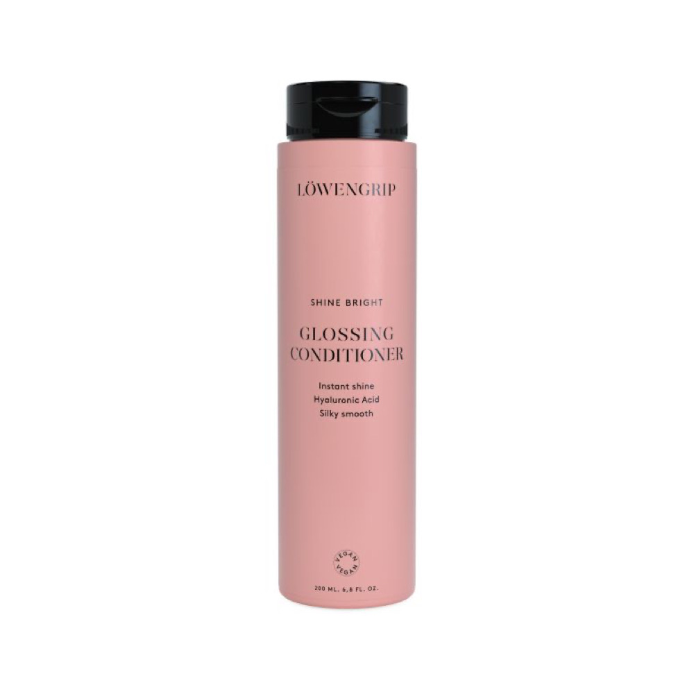 Shine Bright – Glossing Conditioner fra merket Løwengrip, gir umiddelbar og langvarig glans uten å tynge håret. Beriket med hyaluronsyre for å gi intensiv fuktighet og vegansk nærende protein som styrker håret og forbedrer glansen. Kokosolje absorberes lett av hårstråene for langvarig fuktighet og en mykgjørende følelse. Med en herlig duft av vanilje og musk. Passer for alle hårtyper. Vegansk.